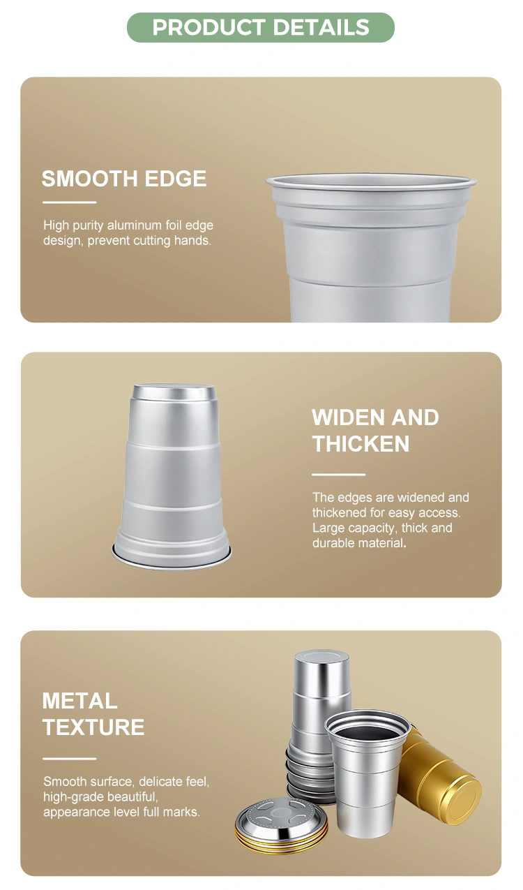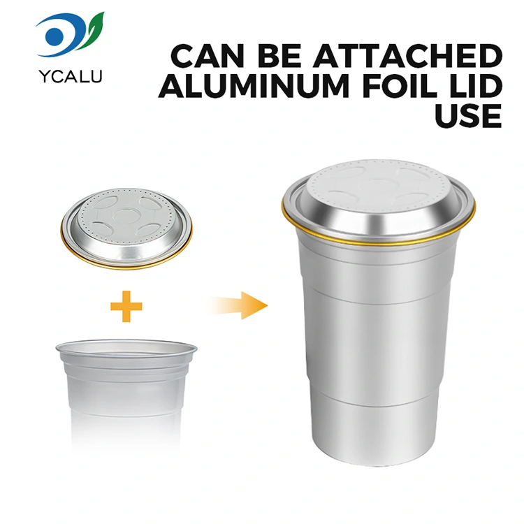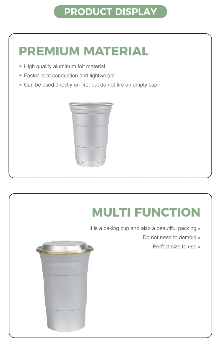Yunchu একটি নেতৃস্থানীয় চীন 16oz ডিসপোজেবল কাস্টম অ্যালুমিনিয়াম ফয়েল পানীয় কাপ প্রস্তুতকারক. এই 16oz ডিসপোজেবল কাস্টম অ্যালুমিনিয়াম ফয়েল ড্রিংকিং কাপ একটি 460-মিলিলিটার অ্যালুমিনিয়াম ফয়েল কাপ যা কফি এবং বিয়ারের মতো স্ট্যান্ডার্ড পানীয়গুলির জন্য উপযুক্ত। এটি একটি প্রমিত নকশা বৈশিষ্ট্যযুক্ত এবং প্রধানত বাণিজ্যিক ব্যবহারকারীদের লক্ষ্য করে যেমন কফি শপ এবং ক্রাফ্ট বার ঘন ঘন কাস্টমাইজেশন প্রয়োজন। দক্ষ তাপ সঞ্চালন এবং মৌলিক সিলিং কর্মক্ষমতা প্রদান করার সময়, এই 16oz ডিসপোজেবল কাস্টম রিসাইকেবল অ্যালুমিনিয়াম ফয়েল ড্রিংক কাপটি দ্রুত এবং নমনীয় ব্র্যান্ডের ভিজ্যুয়াল কাস্টমাইজেশন পরিষেবাগুলির উপর আরও বেশি জোর দেয়।
