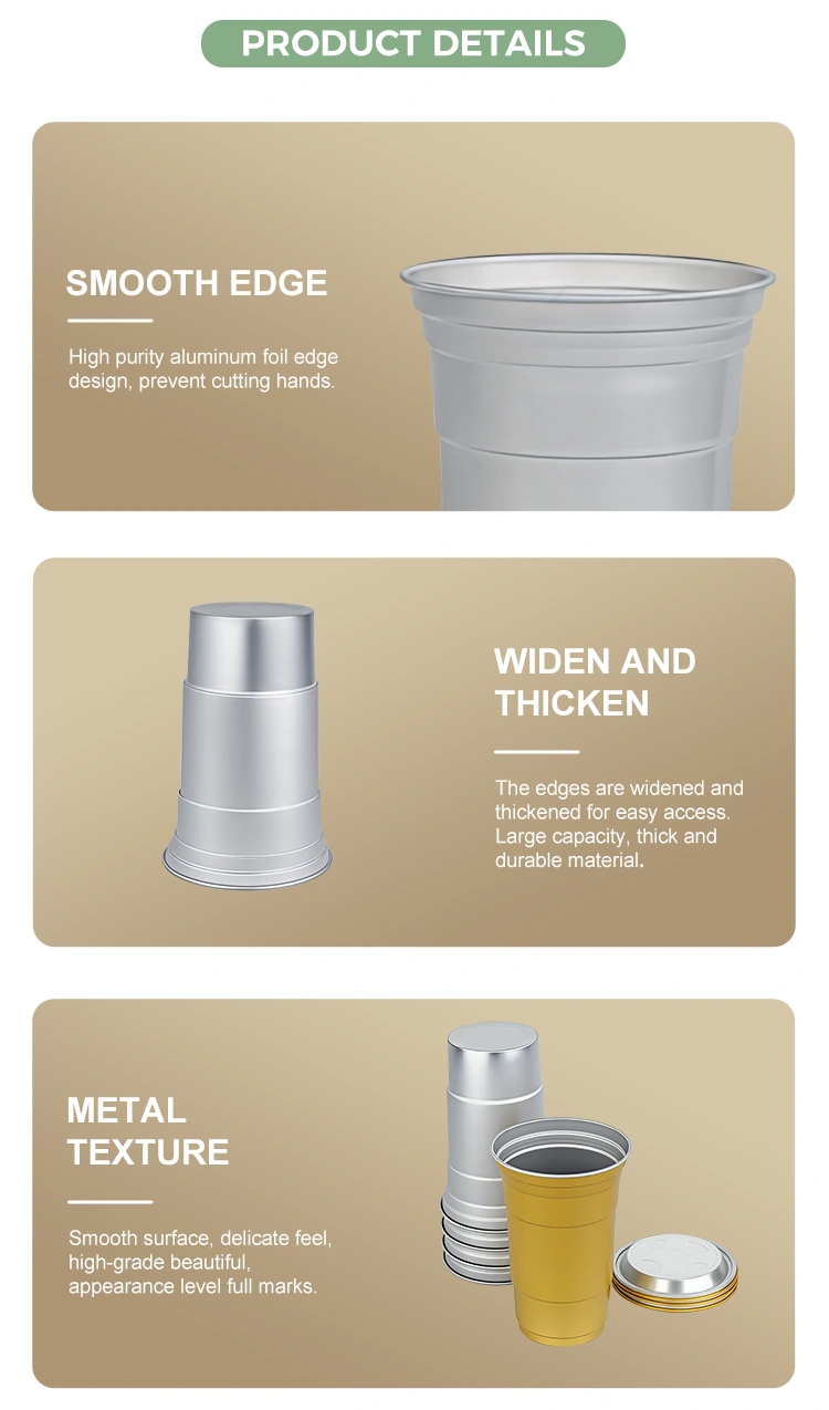 এই পণ্যটির মূল সুবিধা হল এর মজবুত এবং লাইটওয়েট গঠন এবং বিভিন্ন পরিস্থিতিতে এর ব্যাপক প্রযোজ্যতার মধ্যে: এটি শুধুমাত্র চাপ এবং বিকৃতির প্রতিরোধী নয়, এই পাইকারি 20oz ডিসপোজেবল অ্যালুমিনিয়াম কাপ সাধারণ অ্যালুমিনিয়াম ড্রিংক কাপগুলির সাথে বহন করা এবং পরিবহন করা সহজ, তবে এটিকে বিভিন্ন PET সিলিং কভারের সাথে যুক্ত করা যেতে পারে। লিক-প্রুফিং, কফি শপ, বার, ক্যাম্পিং, ক্রীড়া ইভেন্ট এবং অন্যান্য অনুষ্ঠানের জন্য পুরোপুরি উপযুক্ত। উপরন্তু, আমরা ব্র্যান্ডের ব্যক্তিগতকৃত চাহিদা মেটাতে রঙ, লোগো প্রিন্টিং থেকে শুরু করে এক্সক্লুসিভ মোল্ড ডেভেলপমেন্ট পর্যন্ত গভীর কাস্টমাইজেশন পরিষেবা অফার করি এবং ঐতিহ্যগত ডিসপোজেবল কাপের বিকল্প হিসেবে আপনাকে পরিবেশ বান্ধব এবং উচ্চ-মানের সমাধান প্রদান করতে প্রতিশ্রুতিবদ্ধ।