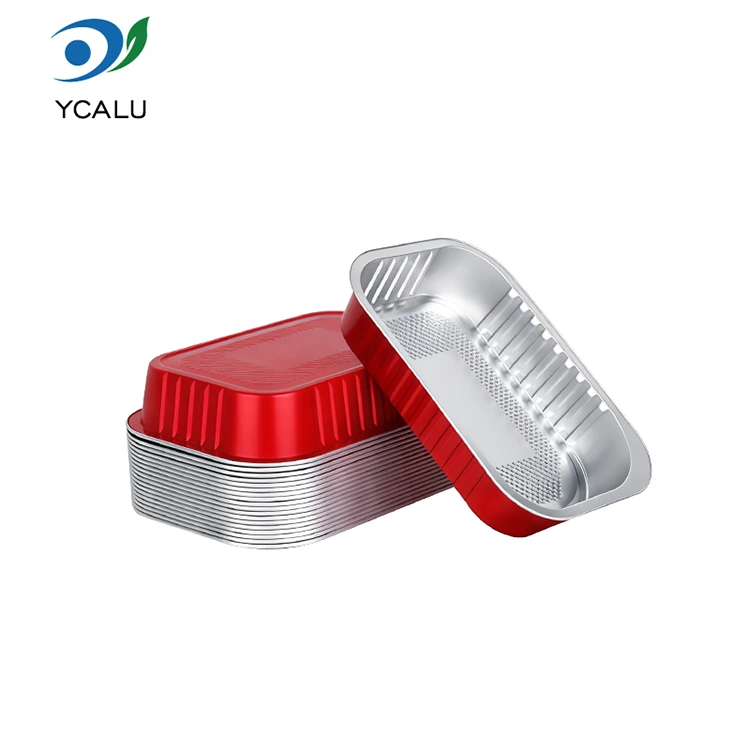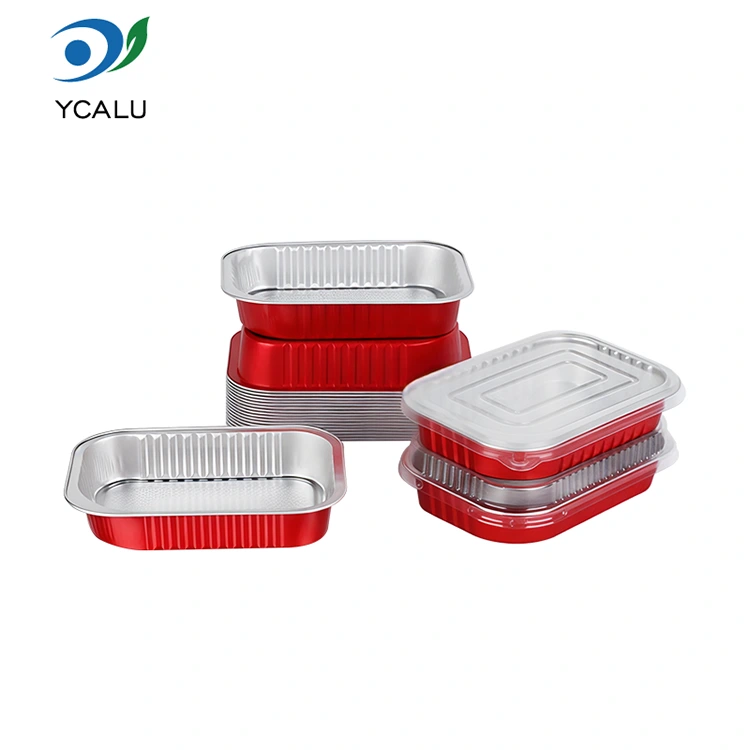 নিষ্পত্তিযোগ্য ক্যাটারিং সীল লাল বর্গক্ষেত্র অ্যালুমিনিয়াম ফয়েল পাত্রে