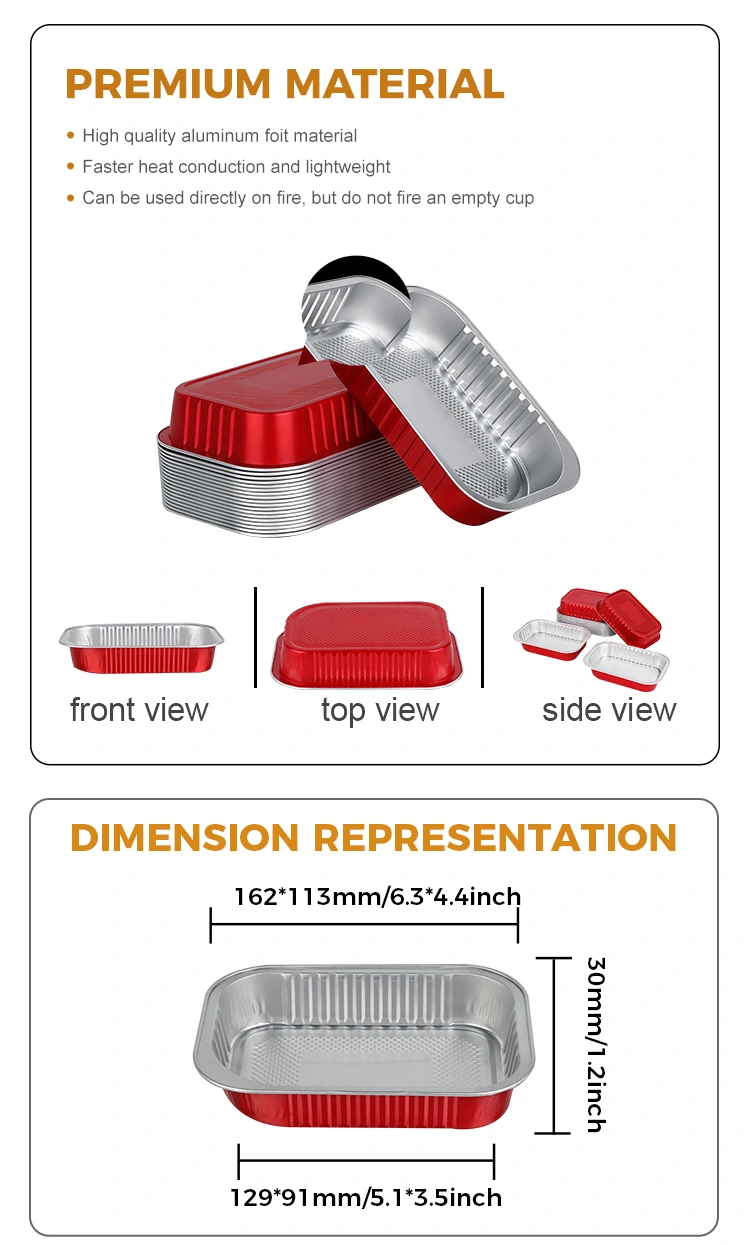 - রেক্ট্যাঙ্গেল রেড অ্যালুমিনিয়াম টেক আউট কন্টেইনারের উপাদান খাবারের সতেজতা এবং সতেজতা লক করতে পারে। এর চমৎকার তাপ সঞ্চালন এবং নিরোধক বৈশিষ্ট্য এটিকে সরাসরি ওভেন, মাইক্রোওয়েভ এবং রেফ্রিজারেটরে গরম করার অনুমতি দেয়, কার্যকরভাবে খাবারের আসল স্বাদে লক করে এবং দীর্ঘ সময়ের জন্য আদর্শ স্বাদ বজায় রাখে।