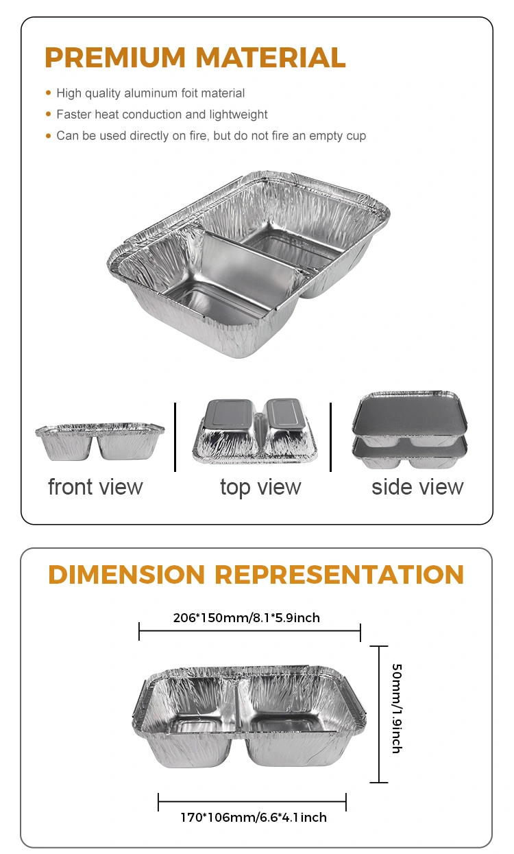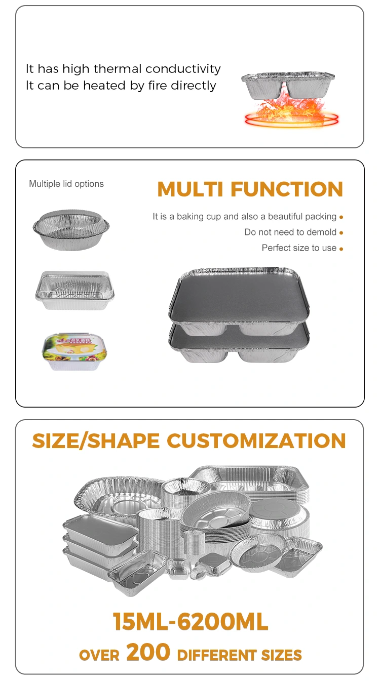 ইয়ুঞ্চু অ্যালুমিনিয়াম ফয়েল সাপ্লাই কারখানার ডিসপোজেবল বগি ফাস্ট ফুড সিলভার অ্যালুমিনিয়াম ফয়েল কনটেইনার মডেল 75600, উপরের ব্যাস 206 মিমি (8.1 ইঞ্চি), 150 মিমি (5.9 ইঞ্চি), নীচে ব্যাস 170 মিমি (6.6 ইঞ্চি), 106 মিমি (4.1 ইঞ্চি), এবং উচ্চতা 50 মিমি (1.9) সহ। ক্ষমতা প্রায় 860 মিলি (30.3 ওজ)। এই অ্যালুমিনিয়াম ফয়েল লাঞ্চ বক্সে কেবল দুর্দান্ত তাপ ধরে রাখা যায় না তবে এটি অ্যালুমিনিয়াম ফয়েল id াকনা দিয়েও যুক্ত করা যায়। তদতিরিক্ত, আমরা গ্রাহক মেমরি আরও গভীর করতে এবং ব্র্যান্ড সচেতনতা বাড়ানোর জন্য কাস্টমাইজড লোগো পরিষেবাগুলি সরবরাহ করি।