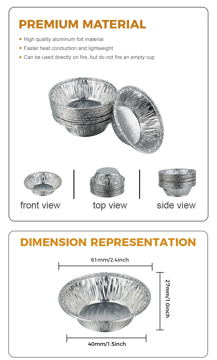 পারিবারিক জমায়েত থেকে শুরু করে বাণিজ্যিক ব্যাপক উৎপাদন পর্যন্ত, Yunchu অ্যালুমিনিয়াম ফয়েল ডিসপোজেবল ডিম টার্ট ট্রে সিলভার অ্যালুমিনিয়াম ফয়েল পাত্রে বিভিন্ন সুস্বাদু সম্ভাবনাগুলি আনলক করে সমস্ত পরিস্থিতিতে মানিয়ে নেওয়া যায়: