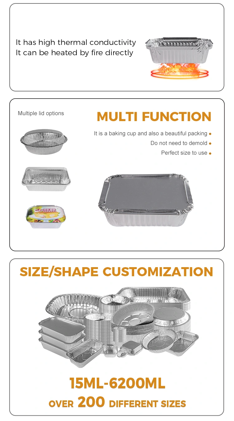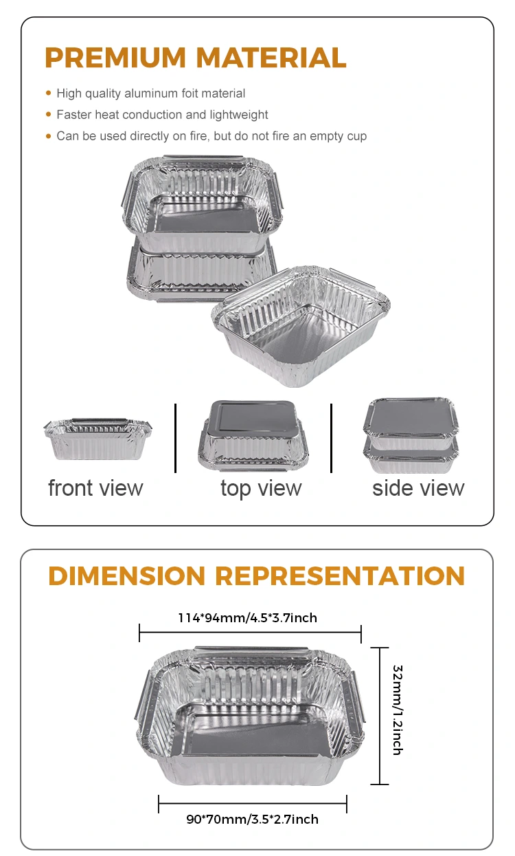 তদতিরিক্ত, এই ডিসপোজেবল বারবিকিউ লাঞ্চ বক্স সিলভার অ্যালুমিনিয়াম ফয়েল কনটেইনারটিও অত্যন্ত নিরাপদ, কারণ এটি আগুনের ঝুঁকির বিষয়ে চিন্তা না করে সাধারণত একটি খোলা শিখার নীচে ব্যবহার করা যেতে পারে। একই সময়ে, এর দুর্দান্ত তাপমাত্রা প্রতিরোধ এবং সিলিংও খাদ্য নিরাপদ পরিবহনের জন্য গ্যারান্টি সরবরাহ করে, যাতে গ্রাহক এবং গ্রাহকদের আরও আত্মবিশ্বাসের সাথে এটি ব্যবহার করতে দেয়।
