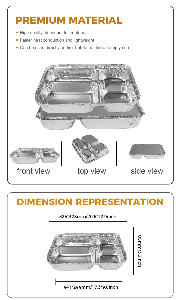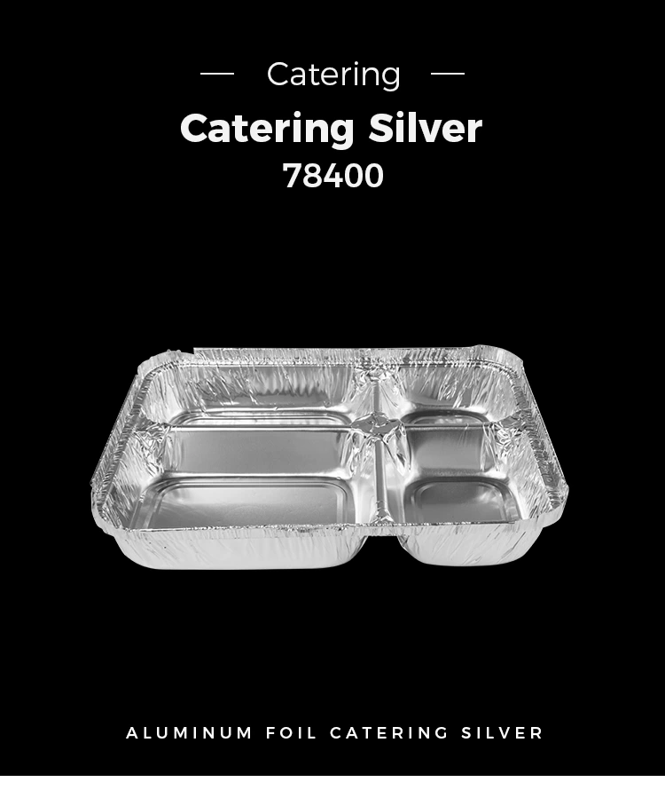 ডিসপোজেবল মাল্টি-বগি ফাস্ট ফুড সিলভার অ্যালুমিনিয়াম ফয়েল পাত্রে