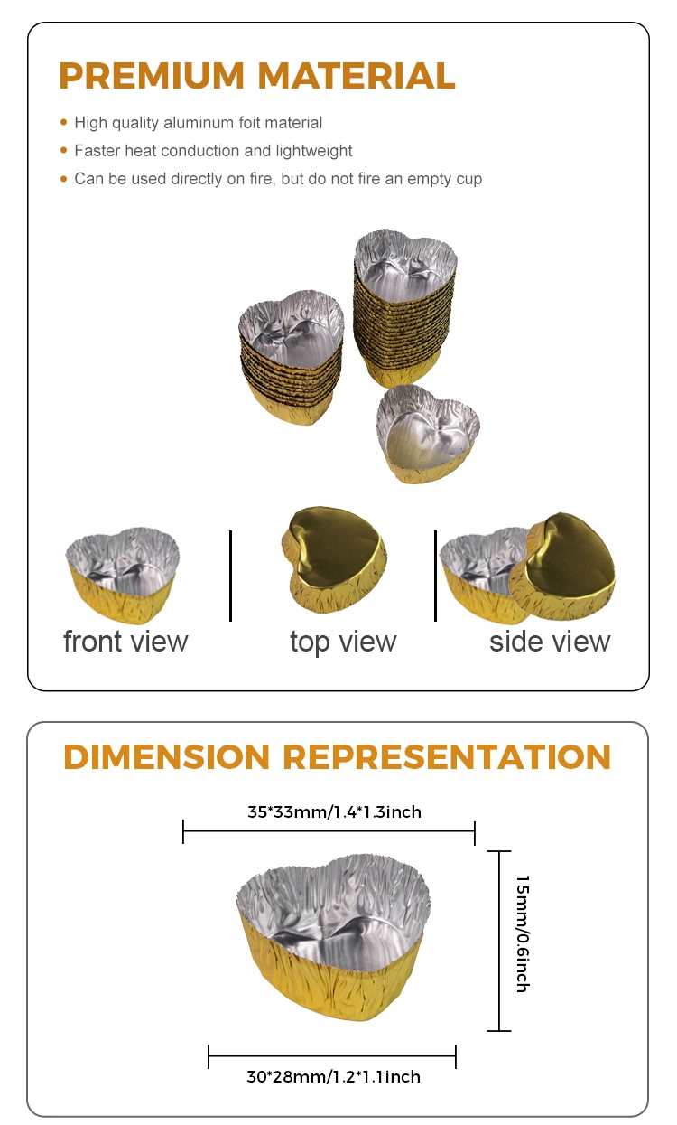 হৃদয় আকৃতির মিনি-বেক সিলভার অ্যালুমিনিয়াম ফয়েল খাবারের ধারক