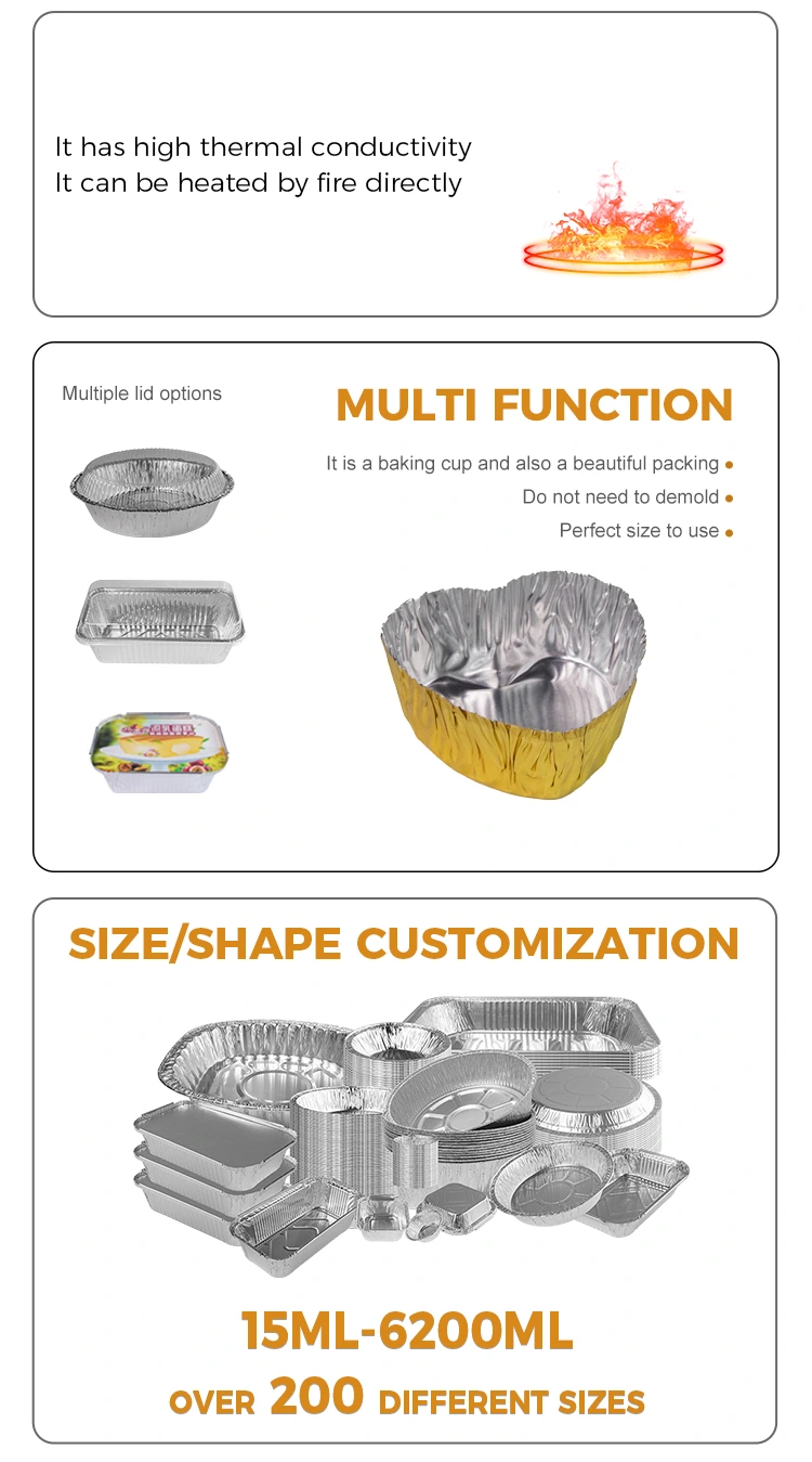 এই পণ্যটি ইয়ুঞ্চু কারখানা দ্বারা কাস্টমাইজ করা হয়, হার্ট-আকৃতির মিনি-বেক সিলভার অ্যালুমিনিয়াম ফয়েল ফয়েল খাবারের ধারকটি সিলভার অ্যালুমিনিয়াম ফয়েল উপাদান, মডেল জে 35-16 দিয়ে তৈরি। ছোট ছোট অংশে বিভিন্ন খাবারের জন্য আধুনিক গ্রাহকদের চাহিদা পূরণের জন্য স্ন্যাকস এবং জেলিগুলির মতো খাবারের ছোট অংশগুলির জন্য এটি আদর্শ। একা উপভোগ করা বা একজন ব্যক্তির স্বাদ গ্রহণের সময় এটি উভয়ই খুব সুবিধাজনক।
