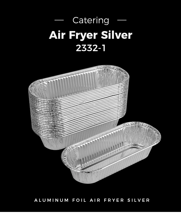 ওভাল এয়ার ফ্রায়ার বেকিং সিলভার অ্যালুমিনিয়াম ফয়েল পাত্রে