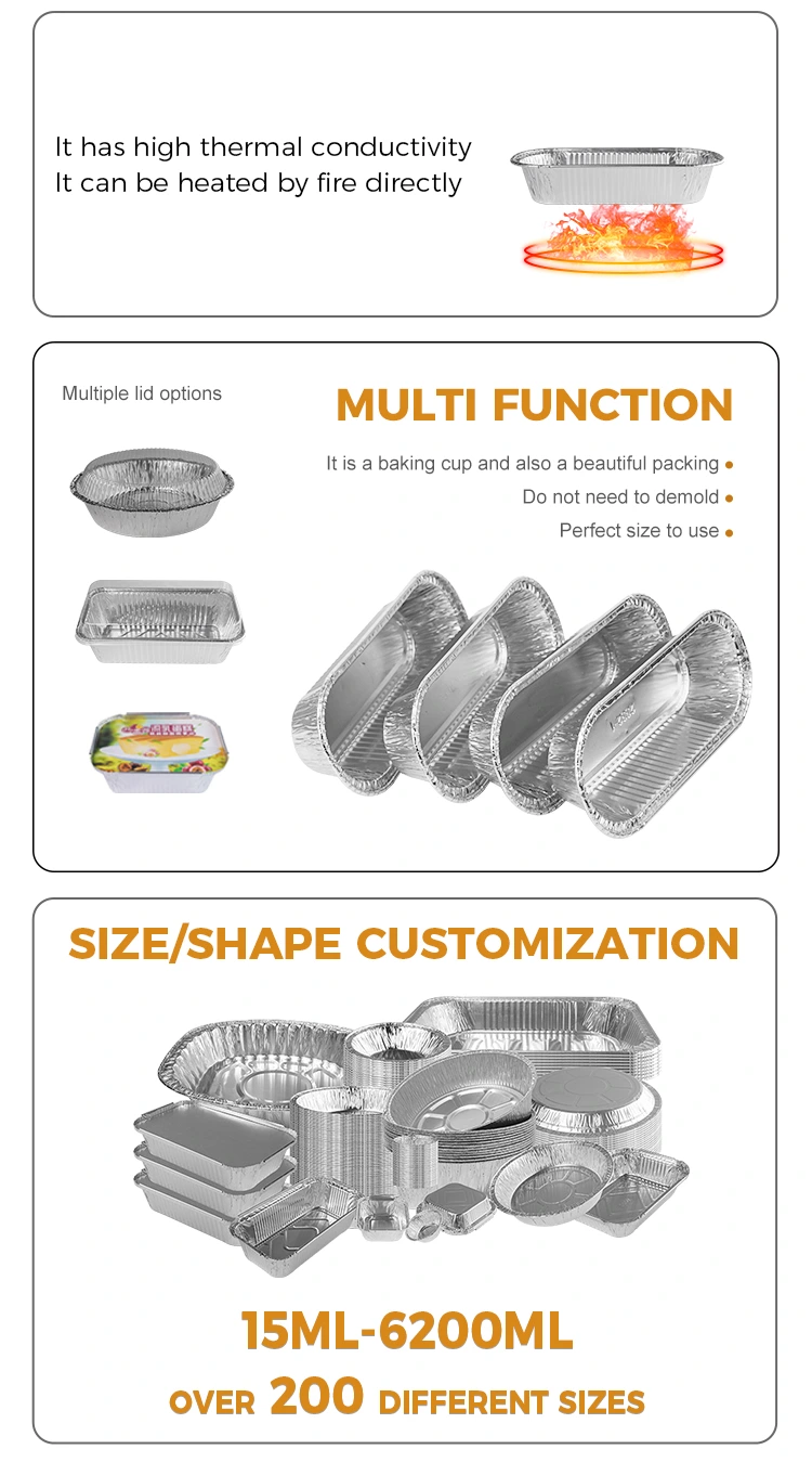 বৈশিষ্ট্যগুলি: স্বাস্থ্যকর এবং পরিবেশ বান্ধব, কোনও-পরিষ্কার, বিভিন্ন বাড়ি তৈরির জন্য উপযুক্ত এবং ডেলিক্যাসিগুলি বেকিংয়ের জন্য উপযুক্ত, বাড়ি এবং বেকারির জন্য আদর্শ। অ্যালুমিনিয়াম ফয়েল উপাদান নিরাপদ এবং স্বাস্থ্যকর, পরিষ্কার করার দরকার নেই এবং এটি বায়ু ফ্রায়ারে ব্যবহারের জন্য খুব উপযুক্ত।