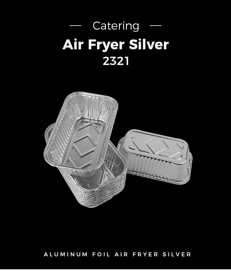 আয়তক্ষেত্রাকার এয়ার ফ্রায়ার গ্রিল সিলভার অ্যালুমিনিয়াম ফয়েল পাত্রে