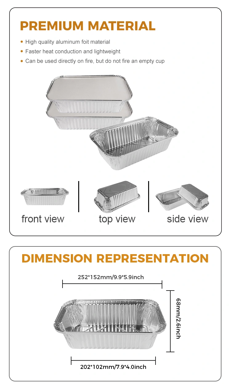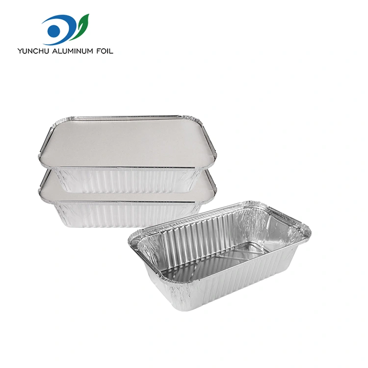 আয়তক্ষেত্রাকার এয়ার ফ্রায়ার প্যাকিং সিলভার অ্যালুমিনিয়াম ফয়েল পাত্রে