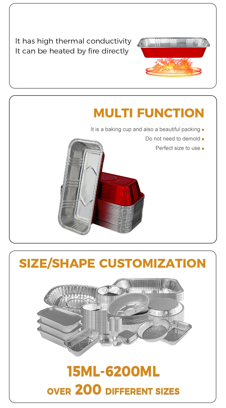 Yunchu অ্যালুমিনিয়াম ফয়েল আপনাকে উচ্চ-মানের আয়তক্ষেত্রাকার লাল বেকারি ক্যাটারিং সিলভার অ্যালুমিনিয়াম ফয়েল কন্টেইনার সরবরাহ করে, যেগুলি টেকসই এবং তাপ-প্রতিরোধী হতে ডিজাইন করা হয়েছে, দাগ প্রতিরোধ করতে সমানভাবে তাপ সঞ্চালন করতে পারে এবং তাজা রাখার জন্য শক্তিশালী সিলিং রয়েছে।