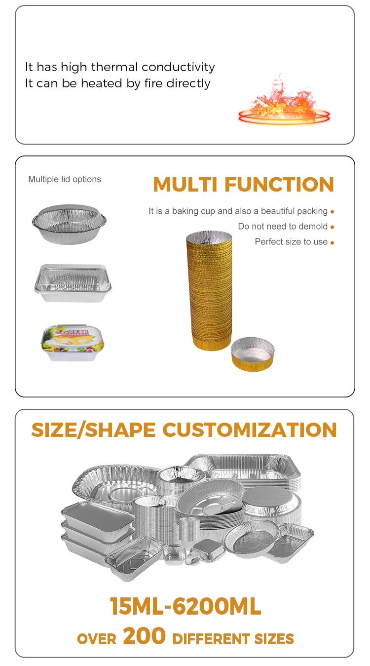 গোল ছোট বেকিং সিলভার অ্যালুমিনিয়াম ফয়েল খাবারের ধারক