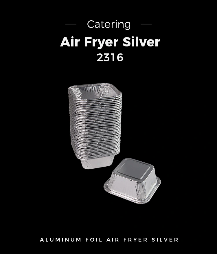 স্কয়ার এয়ার ফ্রায়ার সিলভার অ্যালুমিনিয়াম ফয়েল পাত্রে