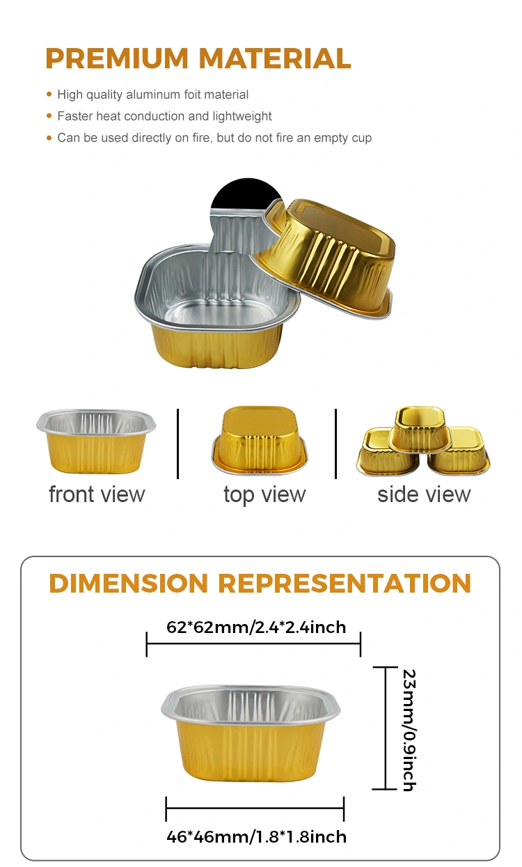 স্কয়ার ডেজার্ট বেকিং কাপ স্মুথওয়াল অ্যালুমিনিয়াম ফয়েল পাত্রে