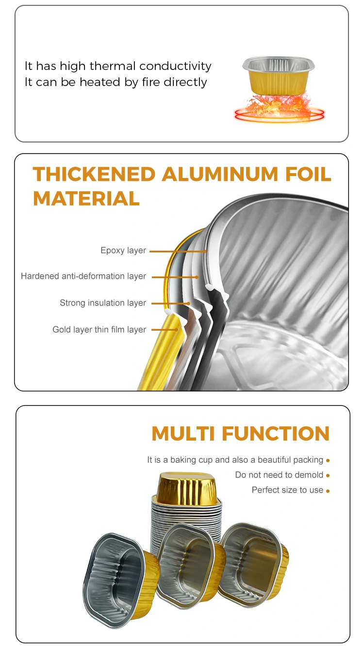 শক্তিশালী পাত্র সুরক্ষা, স্কয়ার ডেজার্ট বেকিং কাপ স্মুথওয়াল অ্যালুমিনিয়াম ফয়েল কন্টেইনার নোংরা হয়ে গেলে এটি ফেলে দেওয়া খুব সুবিধাজনক, অ্যালুমিনিয়াম ফয়েল প্লেট, পাত্রটি ব্যবহারের পরে পরিষ্কার হবে, ঘূর্ণিত কাগজ, প্রান্তগুলি সহজে তেল ফুটো করতে পারে না, খাবার সহজে আটকে যাবে না, এটি নেওয়া সহজ করে তোলে।